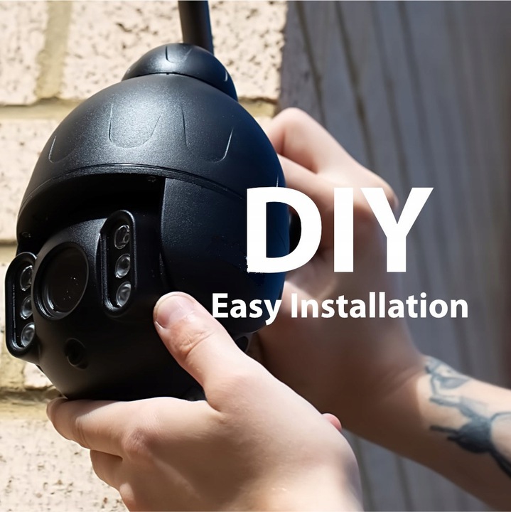 Kamerą zewnętrzną możesz obracać zdalnie! Za pomocą ekranu dotykowego w telefonie, tablecie czy myszką komputera, ustawisz obrócisz głowicę o 355° w poziomie oraz o 90° w pionie, ustalając własną prędkość obrotu.