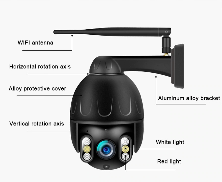 Kamerą zewnętrzną możesz obracać zdalnie! Za pomocą ekranu dotykowego w telefonie, tablecie czy myszką komputera, ustawisz obrócisz głowicę o 355° w poziomie oraz o 90° w pionie, ustalając własną prędkość obrotu.