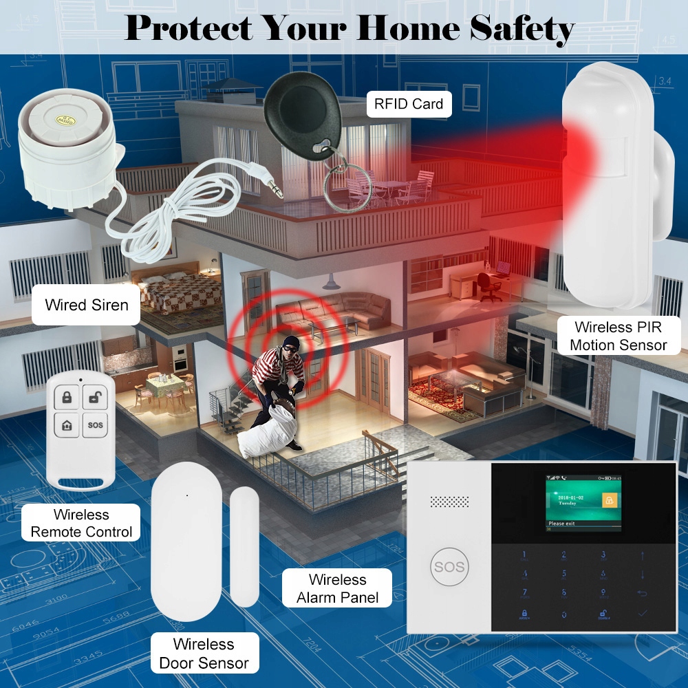 Bezprzewodowy alarm gsm WiFi PG105 + SYRENA !!