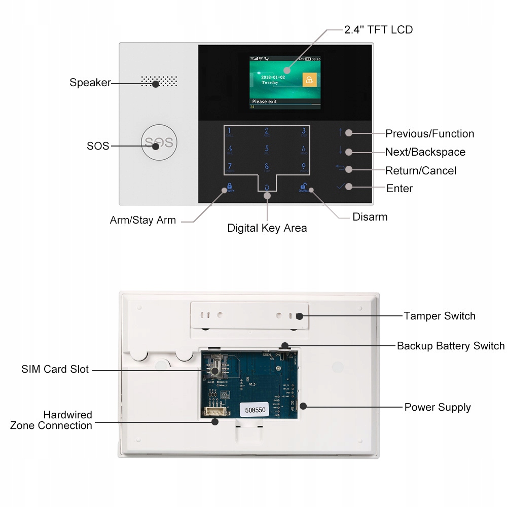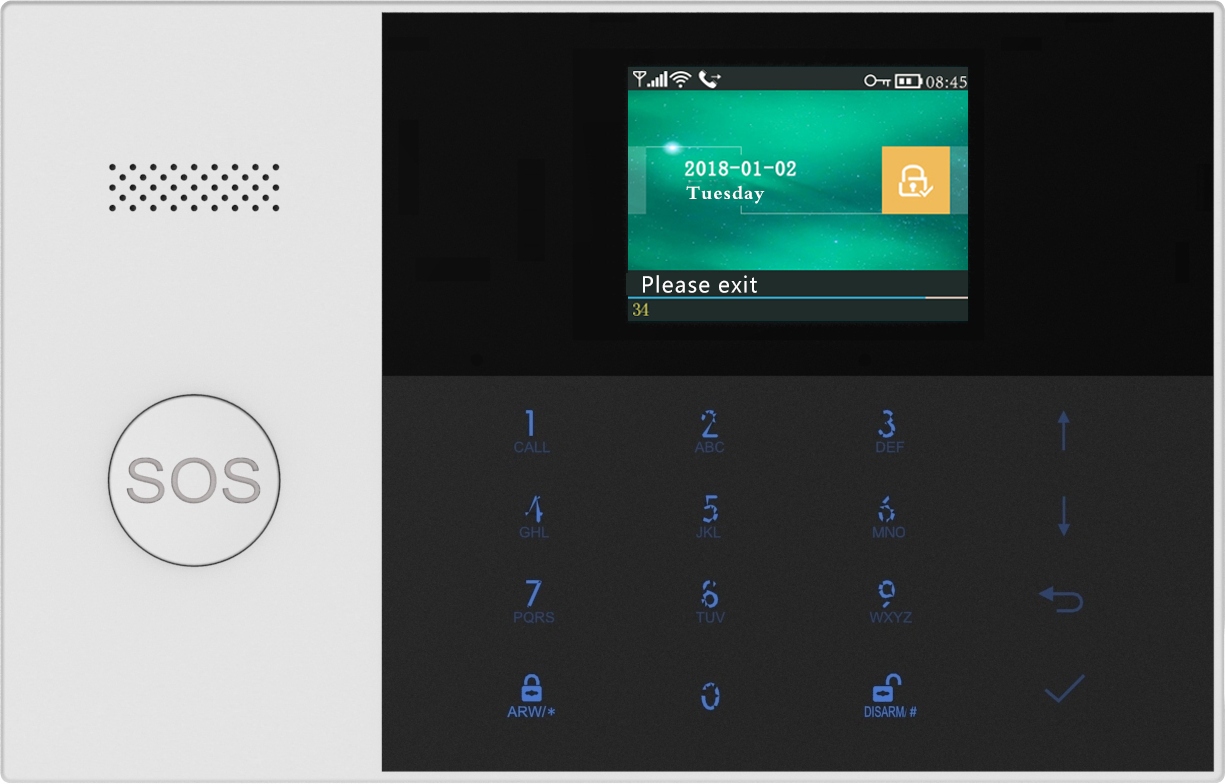 Centrala PG105 została wyposażona w dotykową klawiaturę oraz czytelny wyświetlacz 2,4 cala, które umożliwiają w szybki i wygodny sposób skonfigurować urządzenie. Prezentowany model alarmu posiada przejrzyste menu w języku polskim, co znacznie ułatwi użytkowanie systemu.