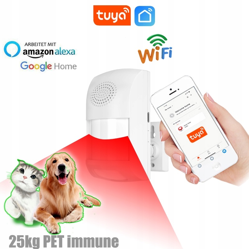 CZUJKA PIR WIFI TUYA SMART LIVE Z SYRENĄ DZWIĘKOWĄ