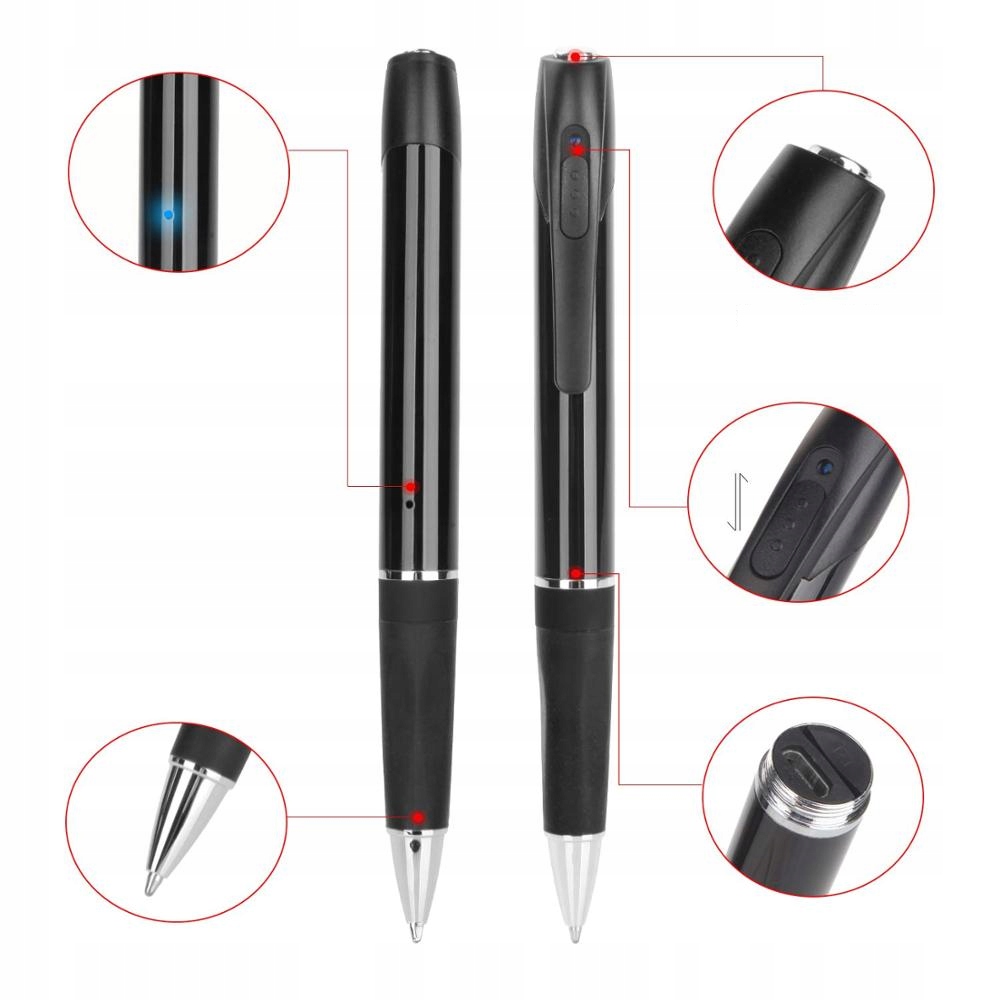 Miniaturowa kamera szpiegowska ukryta w długopisie. Kamera nagrywa w rozdzielczości 1280 x 720 P. Kamera jest niezwykle mała i dyskretna, idealnie nadaje się do rejestracji zdarzeń z ukrycia.
