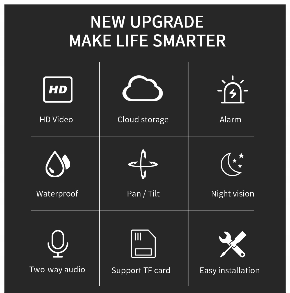 - 4 szt. Ceramiczne diody led, 4 szt. Ciepła, jasna dioda led, odległość IR 60 m. 3 tryby diod led do widzenia w nocy: zwykłe/kolorowe/inteligentne