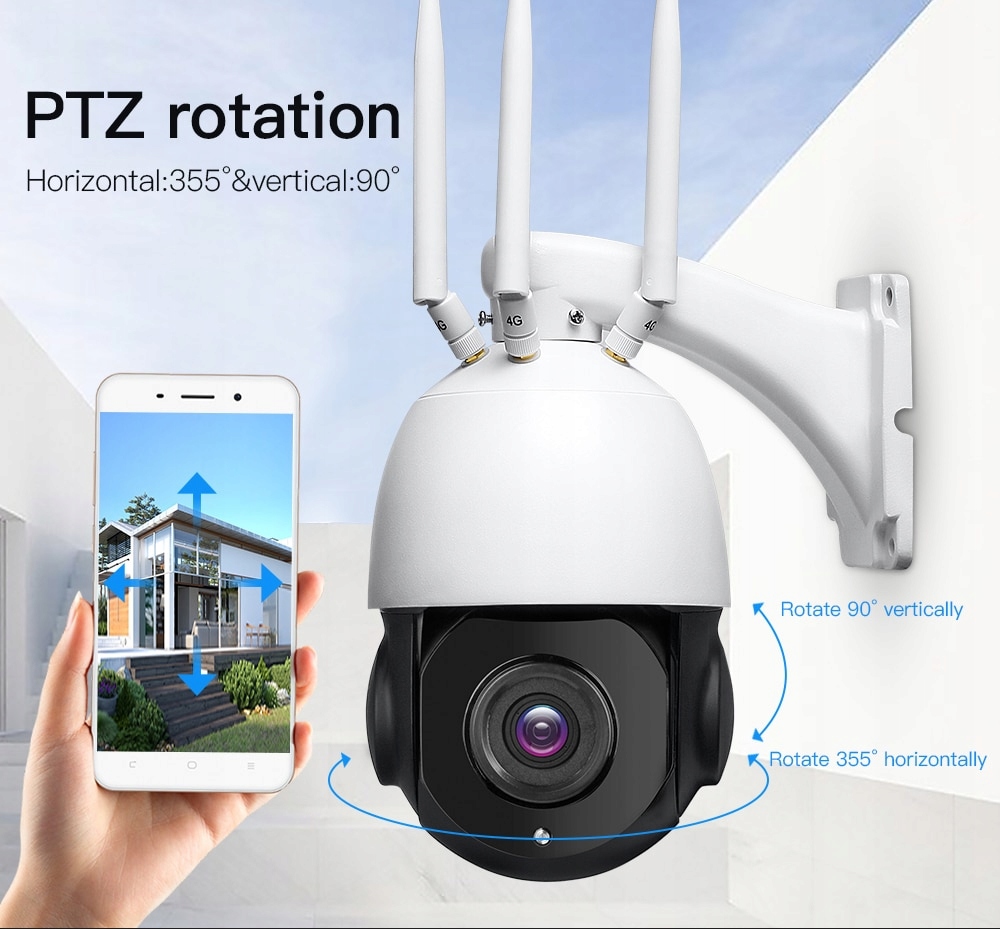 Bezprzewodowa Zewnętrzna Kamera FULL HD 5Mpx 2592×1944 Gsm 3G 4G Lte SIM nagrywa na kartę mSD, Kamera Obrotowa PTZ, podczerwień do 100m, Zoom x30