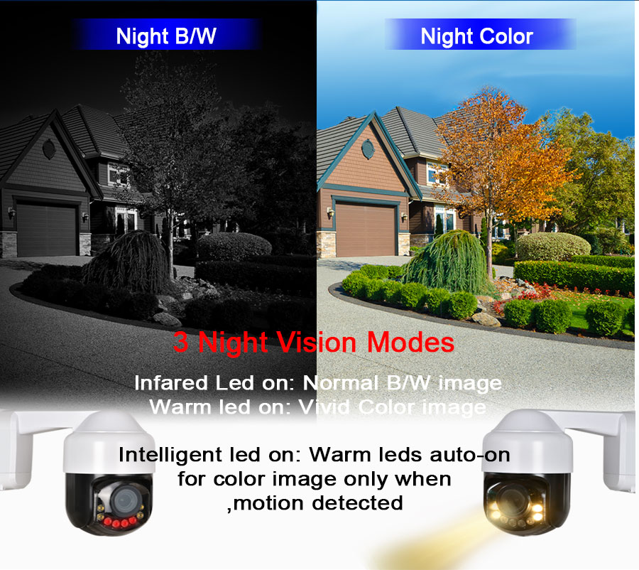 - 4 szt. Ceramiczne diody led, 4 szt. Ciepła, jasna dioda led, odległość IR 60 m. 3 tryby diod led do widzenia w nocy: zwykłe/kolorowe/inteligentne