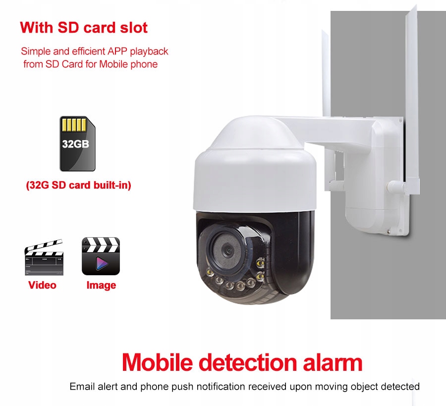 - Wykrywanie ruchu, alert e-mail, przesyłanie FTP