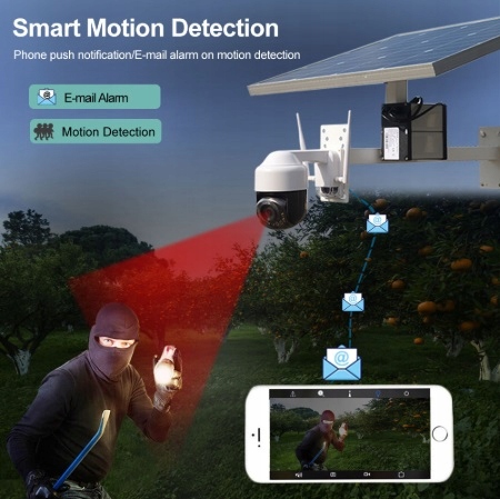 Kamera GSM Obrotowa z mocnym Panelem Słonecznym na kartę SIM 4G 1080P 2MPX, IR60 zapis na karcie mSD, ZOOM x4, przetwornik SONY!