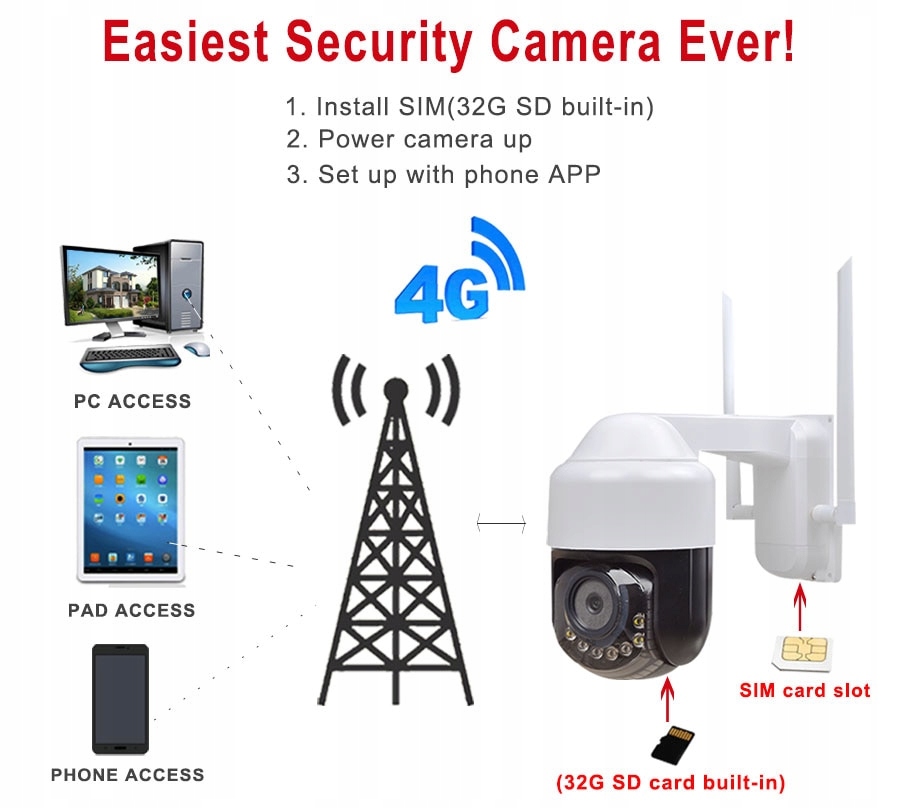 Kamera na kartę SIM po zainstalowaniu karty SIM masz podgląd on-line wszędzie tam, gdzie jest sieć komórkowa; jeśli masz dostęp do internetu – masz podgląd, nawet na drugim końcu świata