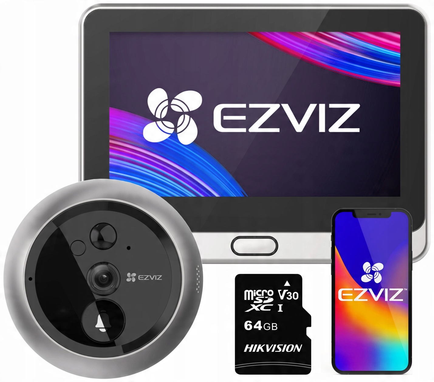 WIZJER EZVIZ DP2C 3w1 – KAMERA & DZWONEK & WIZJER + Karta microSD 64Gb