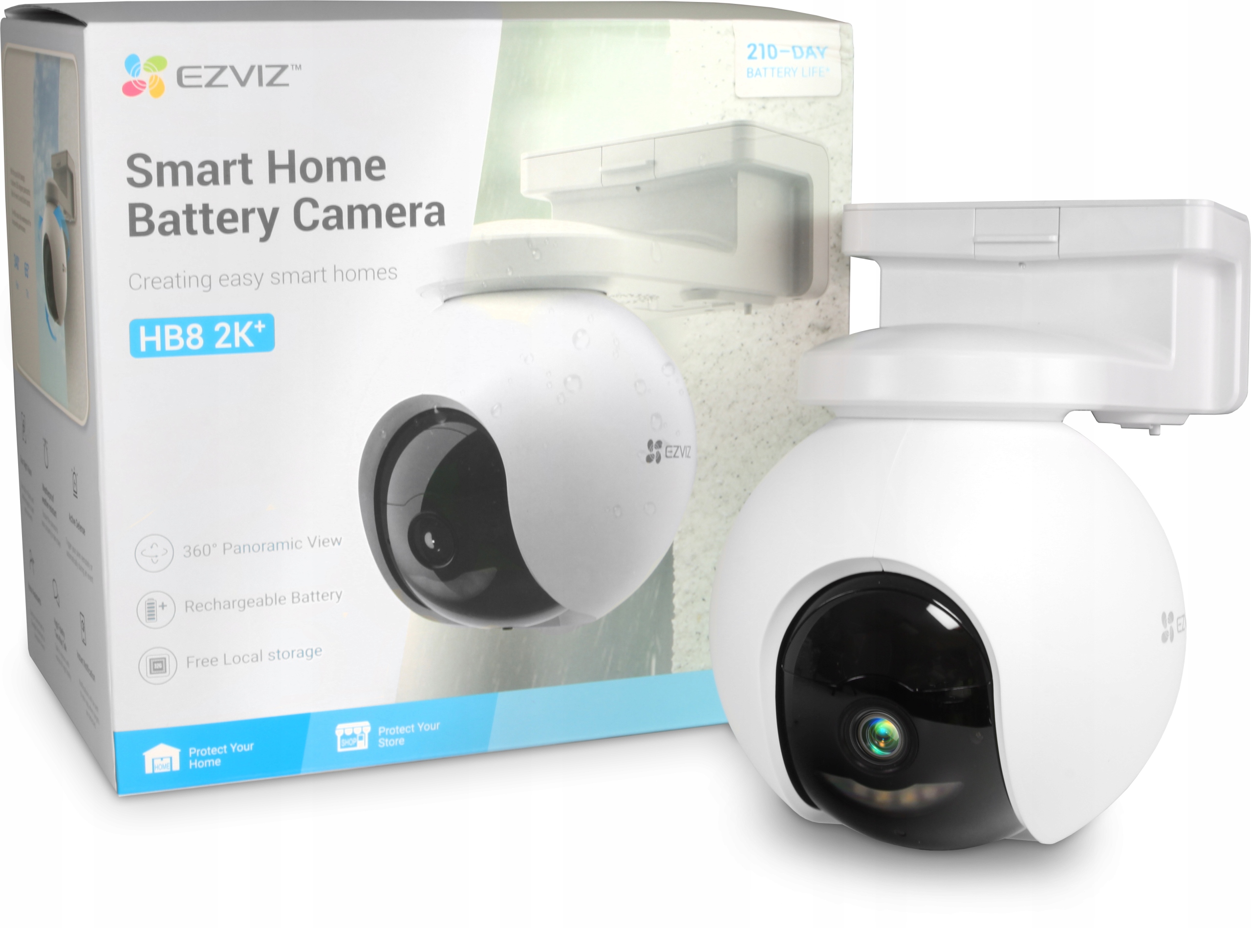 Przedstawiamy pierwszą zasilaną akumulatorami obrotowo-uchylną kamerę bezpieczeństwa firmy EZVIZ, model HB8. Jest naprawdę wyjątkowa. Umożliwia rejestrowanie obrazu z wszystkich kierunków. Model HB8 2K+ rejestruje obraz w zakresie 360 stopni w niesamowicie wysokiej rozdzielczości i pozwala na automatyczne zapisywanie zdarzeń w pamięci wewnętrznej. Dzięki bardzo pojemnemu akumulatorowi pozwalającemu na pracę przez 210 dni kamera HB8 znacząco upraszcza montaż kamer zewnętrznych, zapewniając równocześnie parametry porównywalne do odpowiedników przewodowych. Jeśli kamera HB8 zostanie wyposażona w opcjonalne panele słoneczne, może pracować jeszcze dłużej.