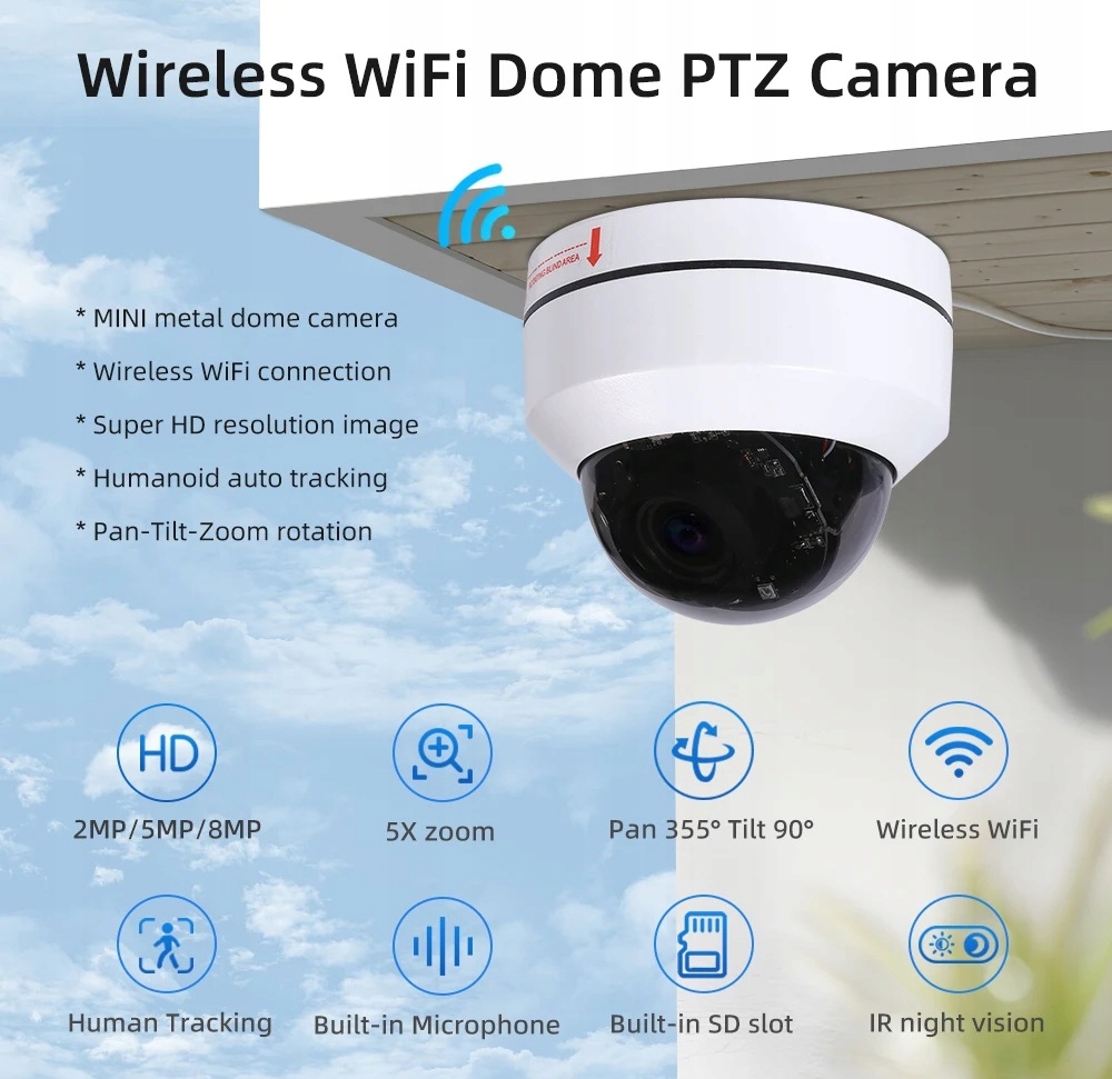 Mini Kamera IP WIFI Zewnętrzna Obrotowa Bezprzewodowa Full HD 5mpx