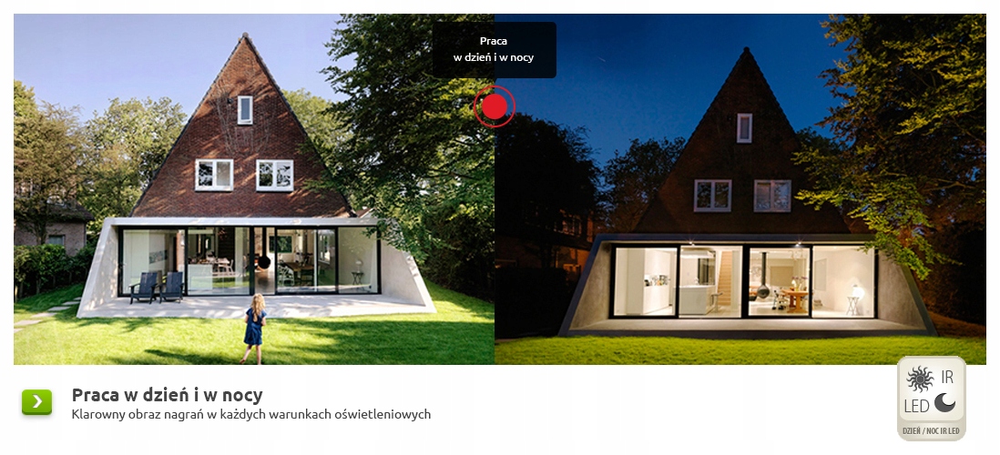 Monitoring w nocy jest skuteczny dzięki wbudowanym mocnym diodom IR na podczerwień lub kolorowemu obrazowi Nocą!