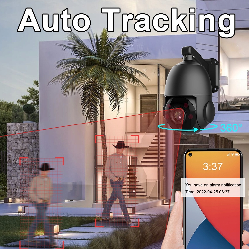* Wykrywanie inteligentny alarm i ludzi: nieograniczony obrót w nieskończonym kącie 360 stopni, obsługa alarmu wykrywania prędkości ustawionej pozycji, obsługa wykrywania i przechwytywania przez ludzi, wyzwalacz ruchu i alarm, APP powiadomienia push i zapis alarmu.
