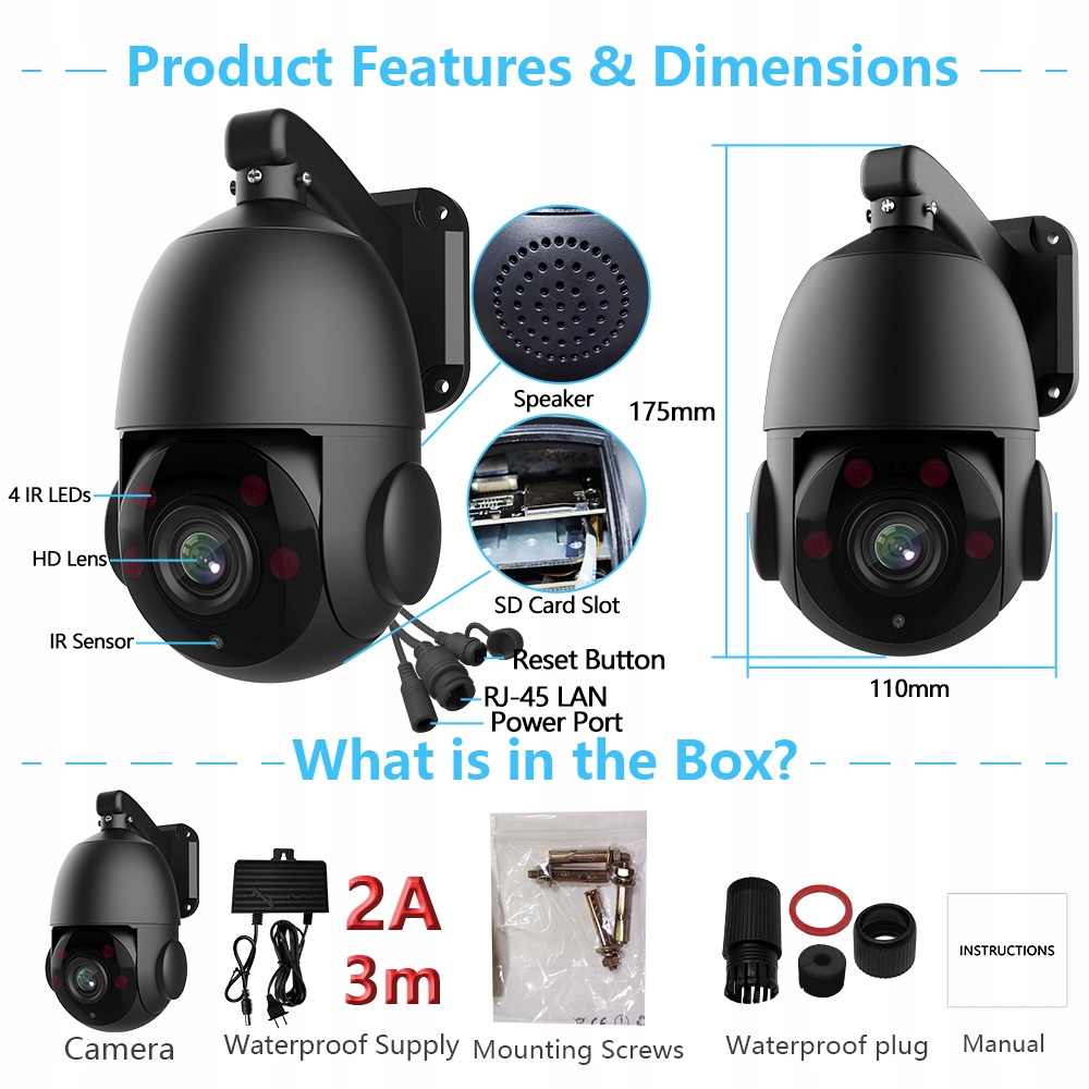 Wsparcie połączenia przewodowego POE; Wsparcie protokołu ONVIF, dostęp do NVR, dostęp do stron trzecich za kulisami/platformy