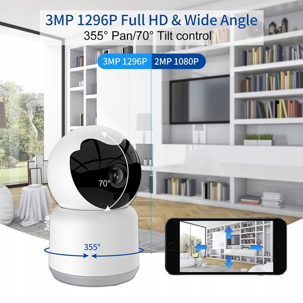 • Pan / Tilt: kąt poziomy 355 stopni i 90 stopni w pionie monitoruje każdy kąt pod kamerą nadzoru domowego; Poruszaj kamerą Security IP zgodnie z własnymi potrzebami, aby ciemne miejsce w Twoim domu nie było już miejscami, o które się martwisz.