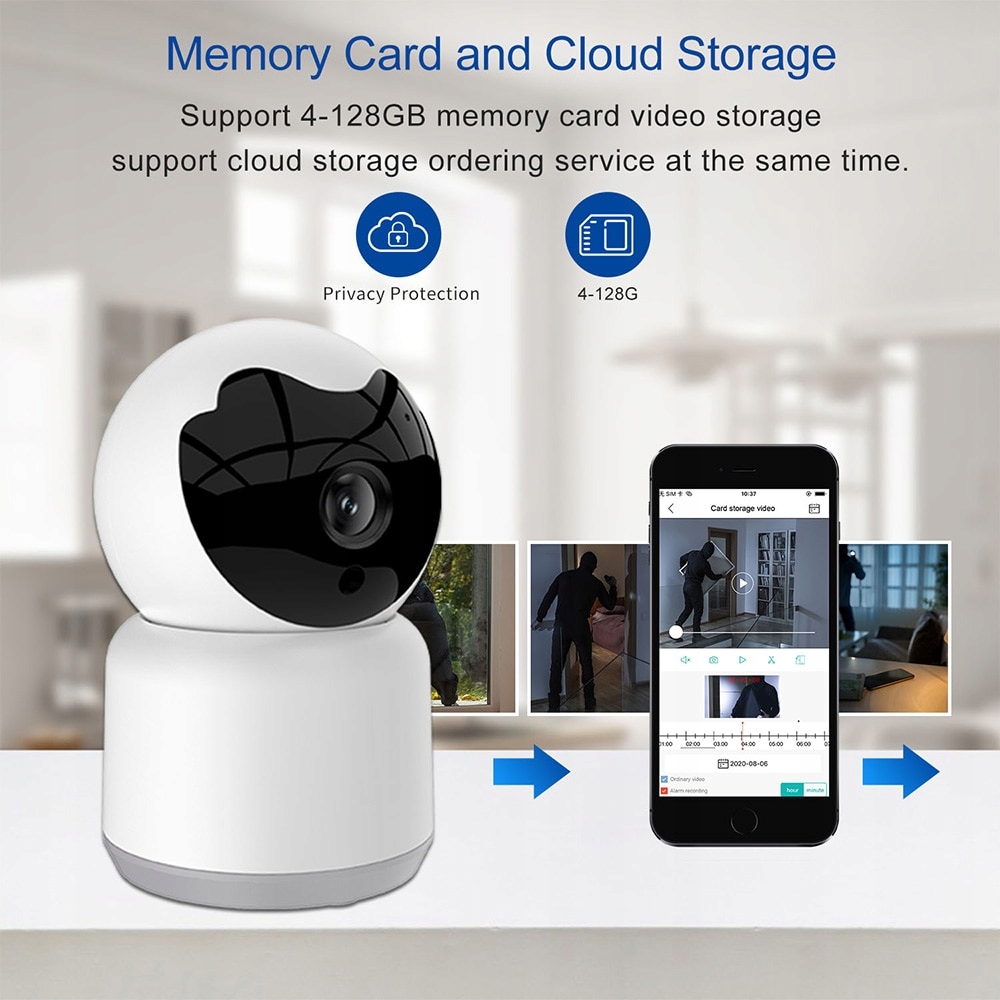 • Dwukierunkowy dźwięk: wbudowany mikrofon i głośniki. Możesz rozmawiać i słuchać swojej rodziny lub przyjaciela na urządzeniu mobilnym. Obsługa zapisów z monitora wideo na karcie micro SD 64 GB (uwaga: karta micro SD nie jest dołączona).