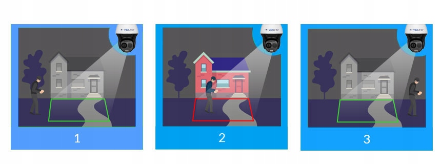 - Podstawowe IVA — kamera posiada algorytmy przekroczenia linii i wkroczenia w obszar co pozwala na precyzyjniejsze wykrywanie potencjalnych zagrożeń;