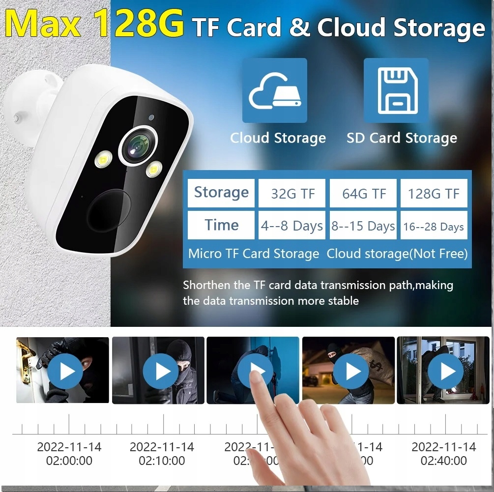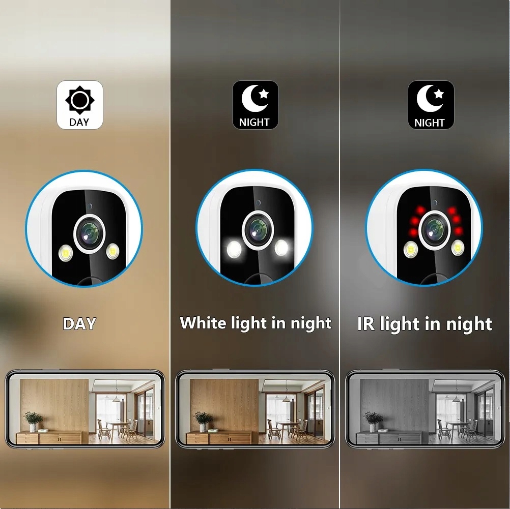 ● Wykrywanie ruchu PIR wsparcia (regulowana czułość (niski)/(średni)/(wysoki)), informacje o alarmie przesyłane są na telefon komórkowy.