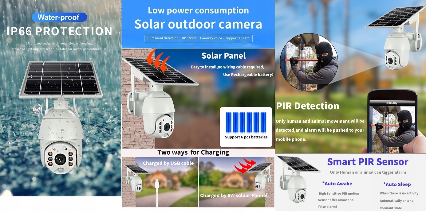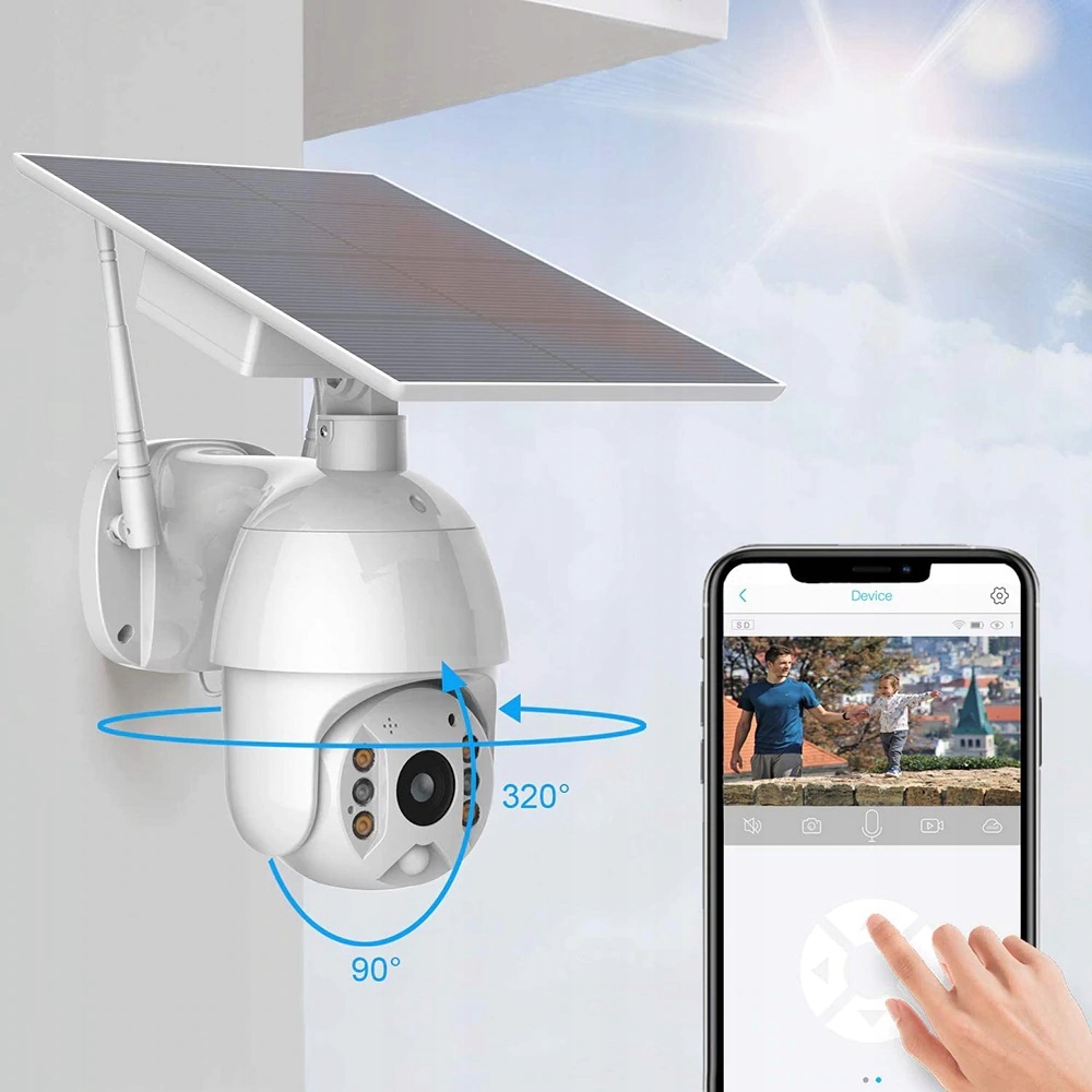Kamera GSM Obrotowa z panelem Słonecznym na kartę SIM 4G 5MPX, kolorowy obraz nocą, zapis na karcie mSD lub w chmurze!