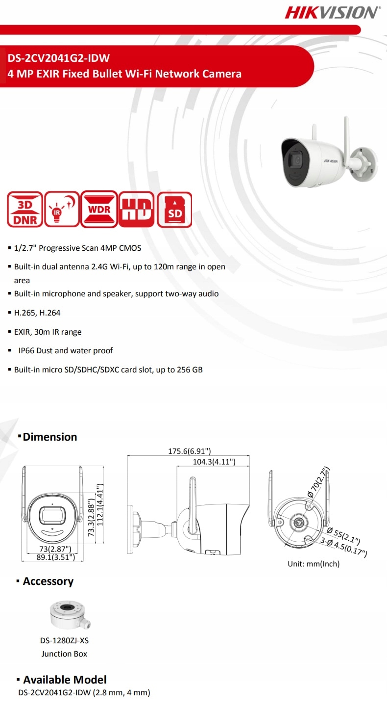 | Model | DS-2CV2041G2-IDW(D) |