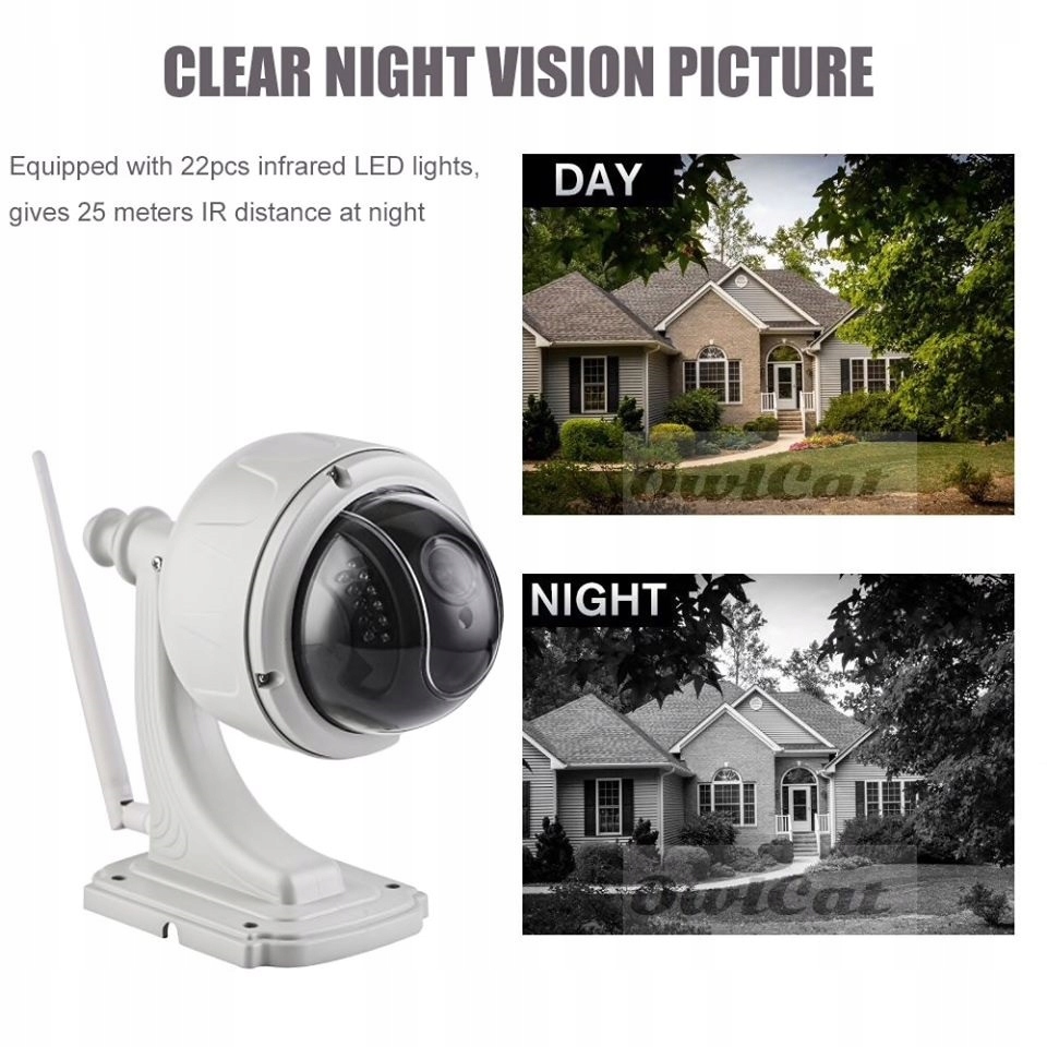 Tryb nocny podczerwień – 22 mocnych diod IR, czujnik zmierzchu Dual Filter ICR.