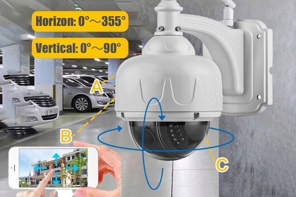Kamerą zewnętrzną  możesz obracać zdalnie! Za pomocą ekranu dotykowego w telefonie, tablecie czy myszką komputera, ustawisz obrócisz głowicę o 355° w poziomieoraz o 90° w pionie, ustalając własną prędkość obrotu.