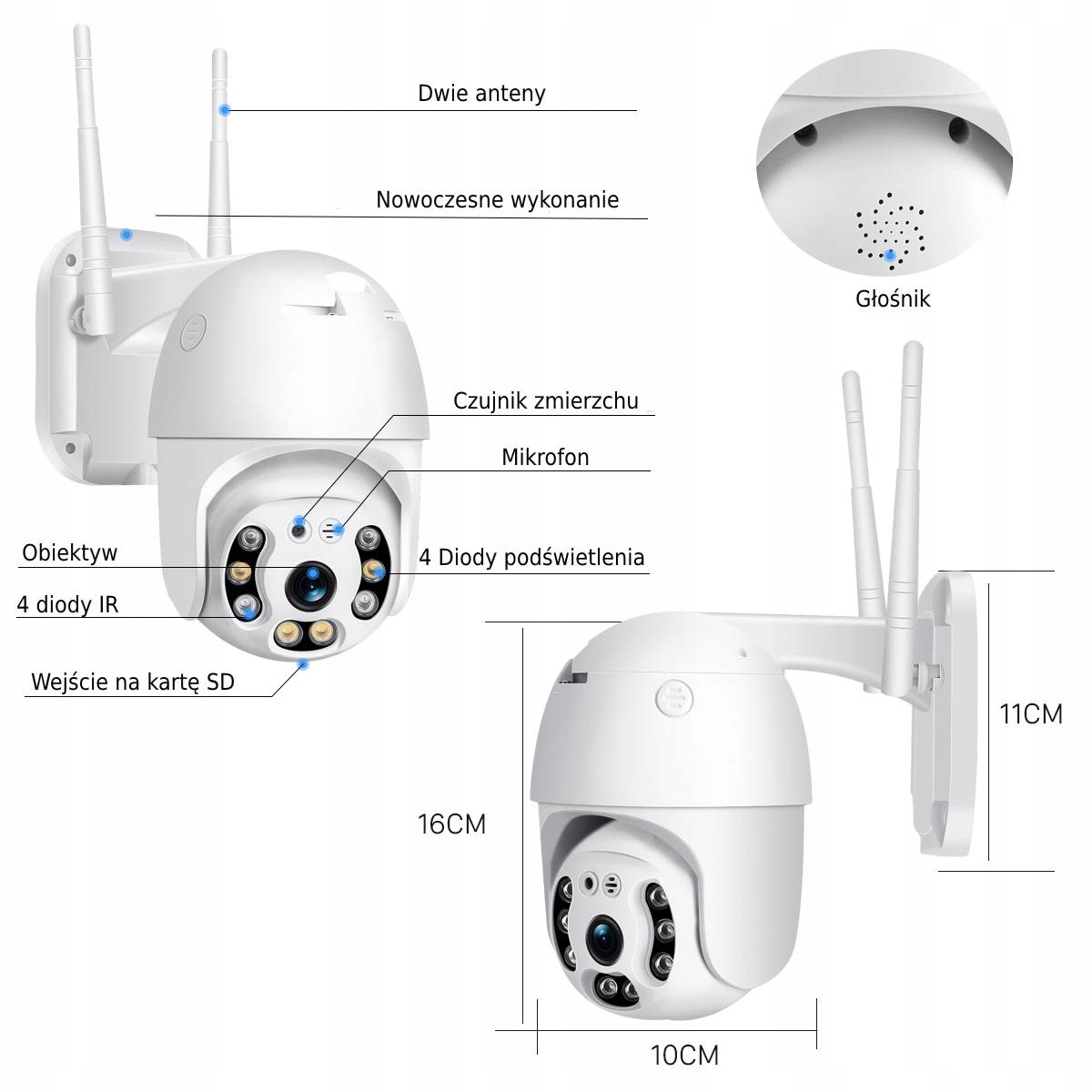 - Kąt widzenia: poziomo -355 stopni, pionowo- 90 stopni
