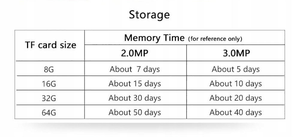 Kamera obsługuje karty SD do 128 GB (zalecane stosowanie kart 64 GB – dostępne w naszej ofercie), dzięki czemu możesz nagrywać obraz przez długi czas i odtwarzać nagrania za pomocą np. pendrive’a. Urządzenie nagrywa w pętli, co oznacza, że najstarsze nagrania są regularnie usuwane przy wyczerpaniu się miejsca na karcie pamięci – kamera nigdy się nie „zatnie” i zawsze będziesz mieć dostęp do nagrań z ostatnich dni!
