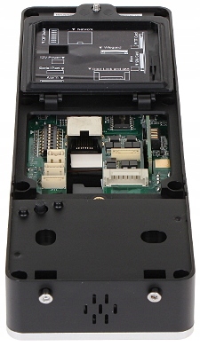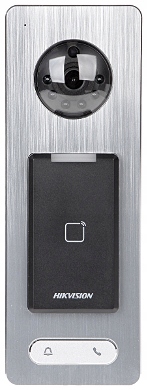 Obsługa kart: MIFARE 13.56 MHz ; Zasięg odczytu kart: max. 5 cm ; Przycisk dzwonka; Linie wejściowe: 2 ; Linie wyjściowe: 1 ; Przetwornik: 2.0 Mpx CMOS ; Oświetlacz IR; Wybrane cechy: Wbudowany watchdog, Wbudowany mikrofon, Wbudowane głośniki, Komunikacja dwukierunkowa, Wbudowana kamera umożliwia odczyt kodów QR, detekcję twarzy oraz wykonywanie zdjęć w przypadku naciśnięcia przycisku dzwonka, zdarzenia detekcji twarzy lub otwarcia drzwi, Wykrywanie sabotażu – oderwania od podłoża, Możliwość zarządzania za pomocą komputera – aplikacja iVMS-4200 ;