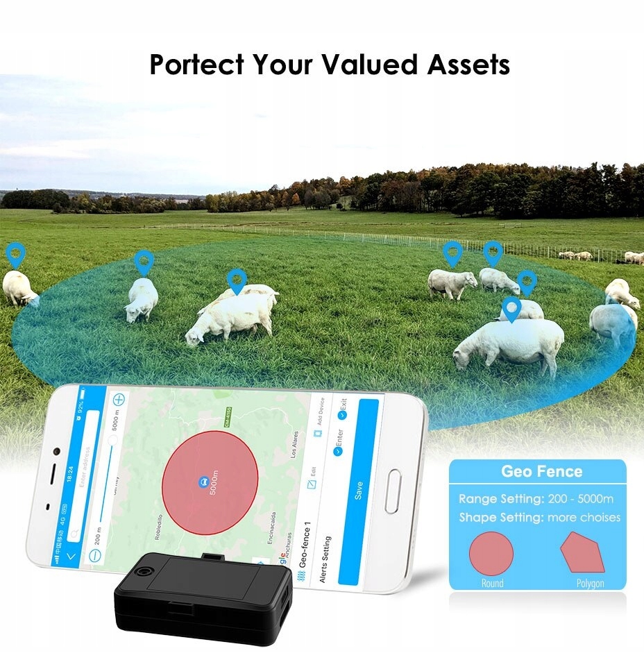 Możemy ustawić geofence na urządzenie śledzące, aby ograniczyć jego ruchy w obrębie dzielnicy. Urządzenie wyśle SMS na autoryzowane numery, gdy wyjdzie z tej dzielnicy.