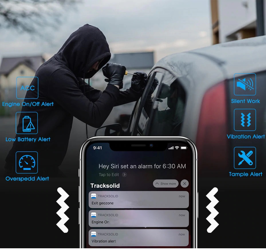 Lokalizator wyśle Ci powiadomienie SMS, gdy zarejestruje wstrząs np. w wyniku uderzenia czy rozbicia szyby. Możesz także uruchomić nasłuch z urządzenia. Jego czuły mikrofon wychwyci i pozwoli usłyszeć wszystko, co mówią osoby znajdujące się w pobliżu lokalizatora.