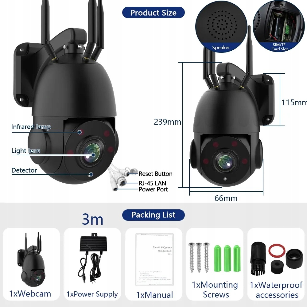 8MP 4G karta SIM metalowa kamera monitorująca 50X Zoom optyczny automatyczne śledzenie 120M noktowizor 4G kamera IP iCsee