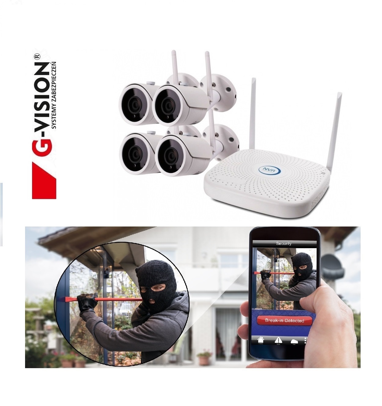 MONITORING BEZPRZEWODOWY WIFI 4 KAMERY HD IR30m FV