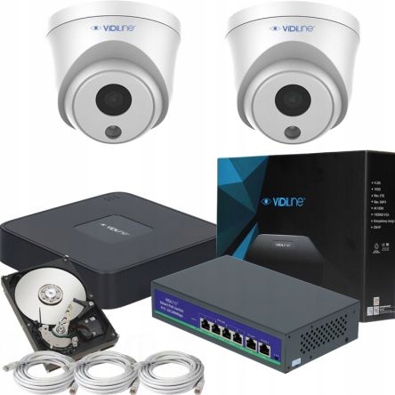 Monitoring VidiLine 2 kamery FULL HD ViDI-IPC-32D 2Mpx Switch Dysk 1TB