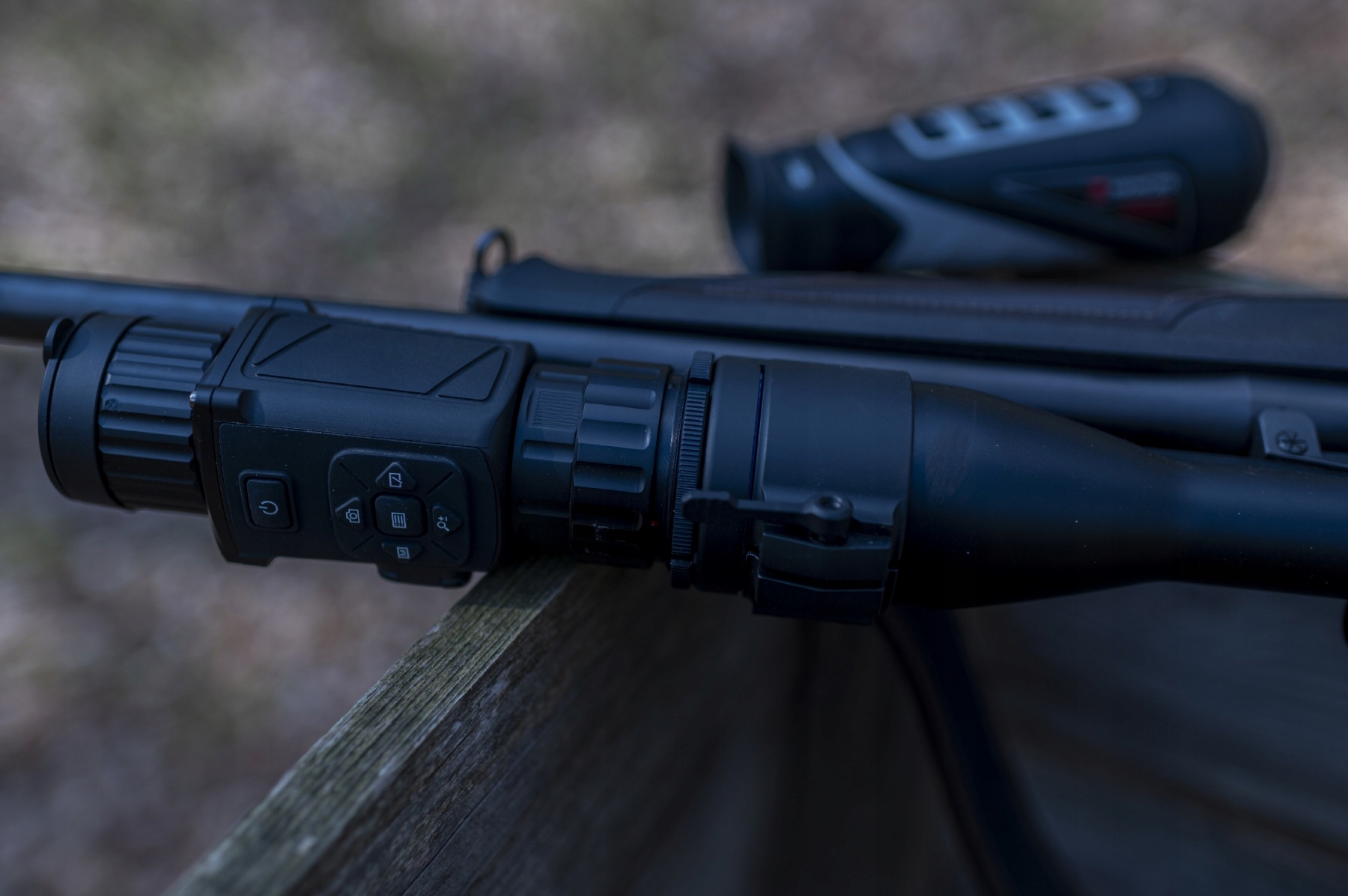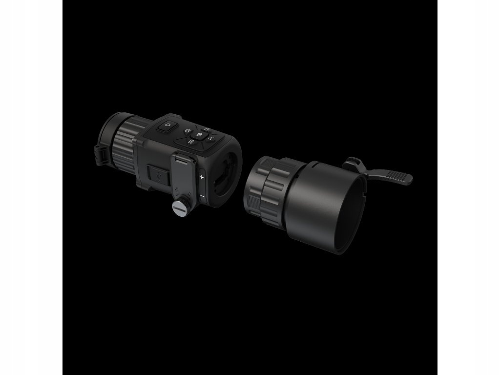 Prezentowany model to odprzodowa nakładka termowizyjna Hikmicro Thunder TQ35C posiadająca obiektyw o ogniskowej 35mm oraz powiększenie optyczne 1x przekładające się na pole widzenia 12.5° × 10.0°. W nasadce Thunder TQ35C odświeżanie obrazu jest na poziomie 50Hz. Obraz jest płynny, nie zacina się nawet przy użyciu maksymalnego powiększenia cyfrowego, które w przypadku Thunder TQ35C wynosi 8x. Po złożeniu z lunetą dzienną, menu nie będzie przeszkadzać, zapewniając proste użytkowanie i komfortową obsługę.