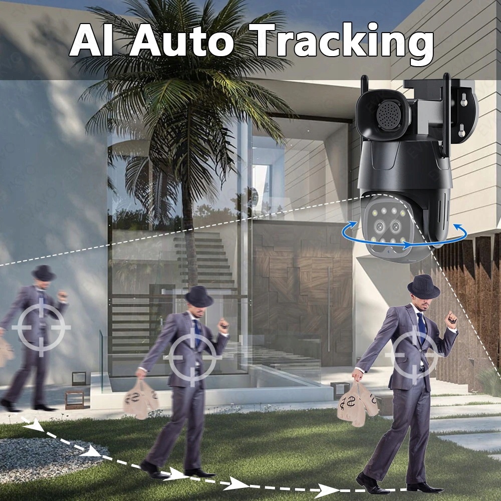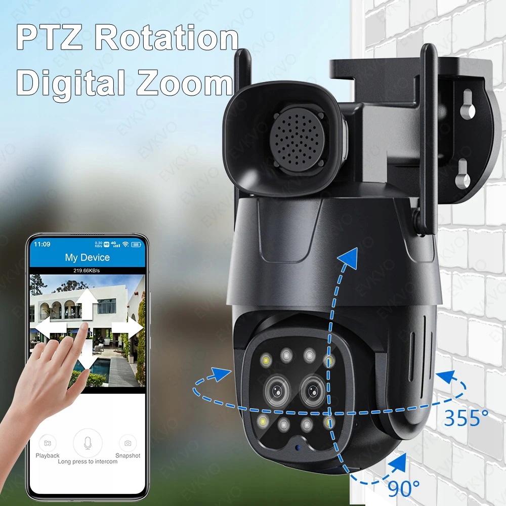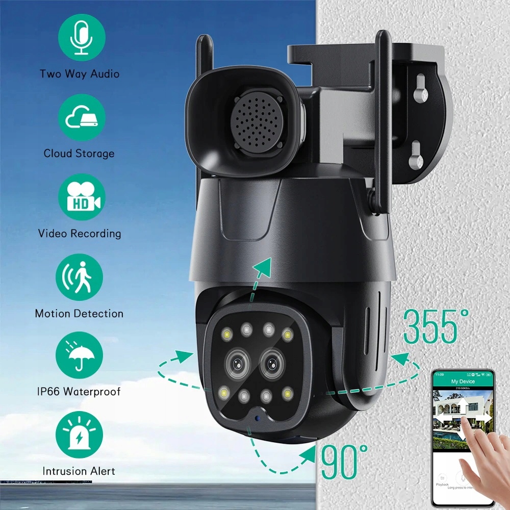 OBROTOWA KAMERA 4G LTE Z SYRENĄ DŹWIĘKOWĄ, 2 obiektywami, 4K 8mpx, zoom x10 , darmowa Aplikacja CamHI PRO