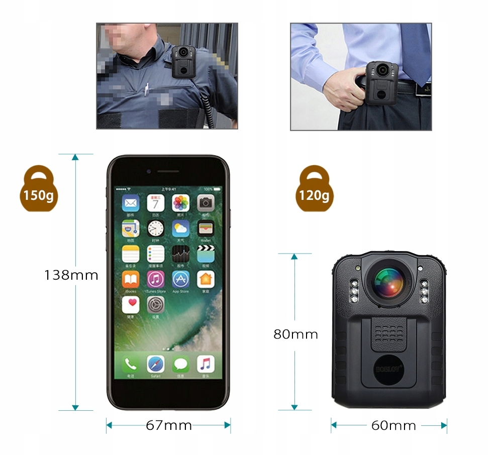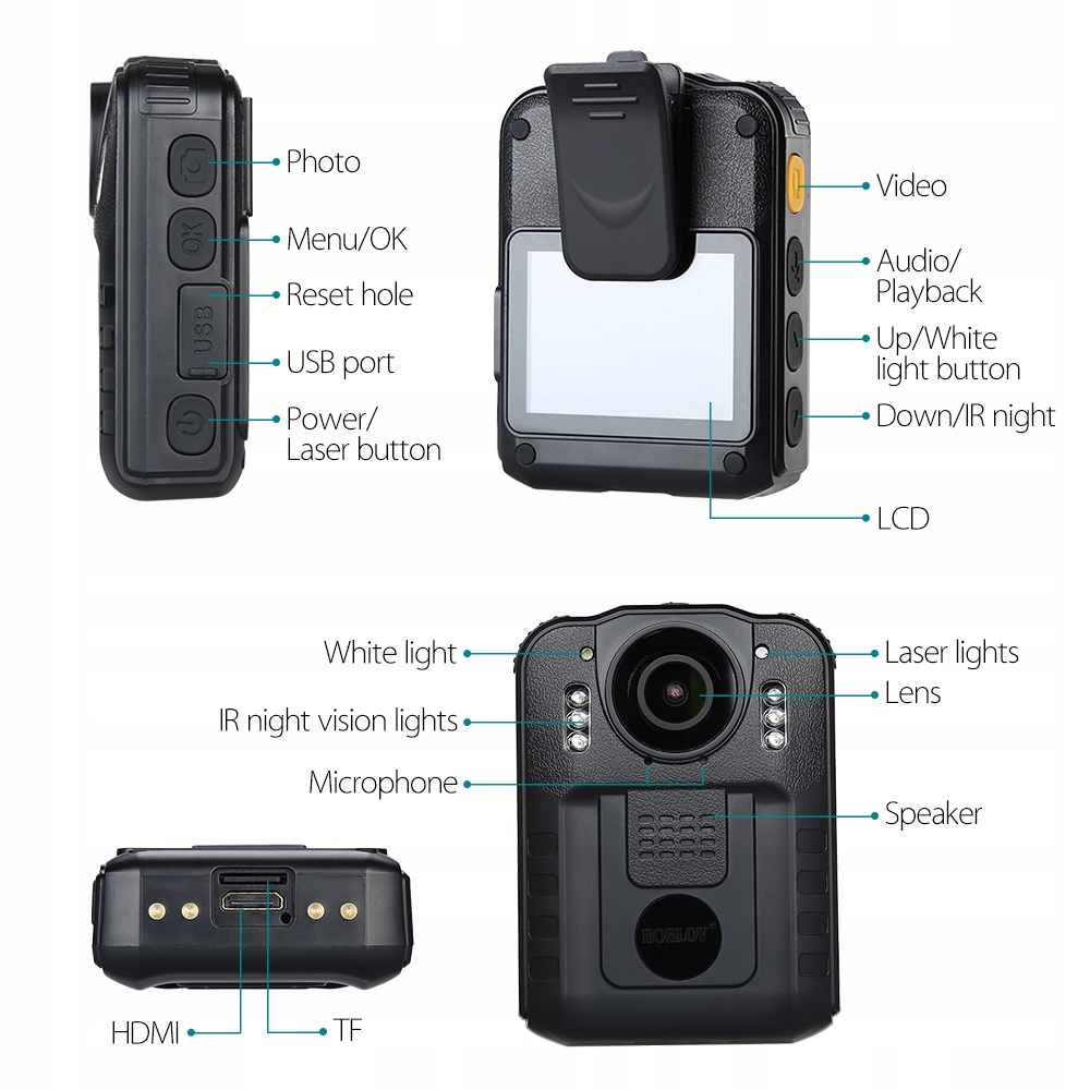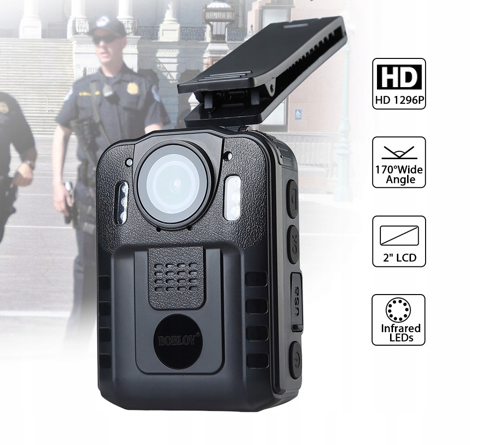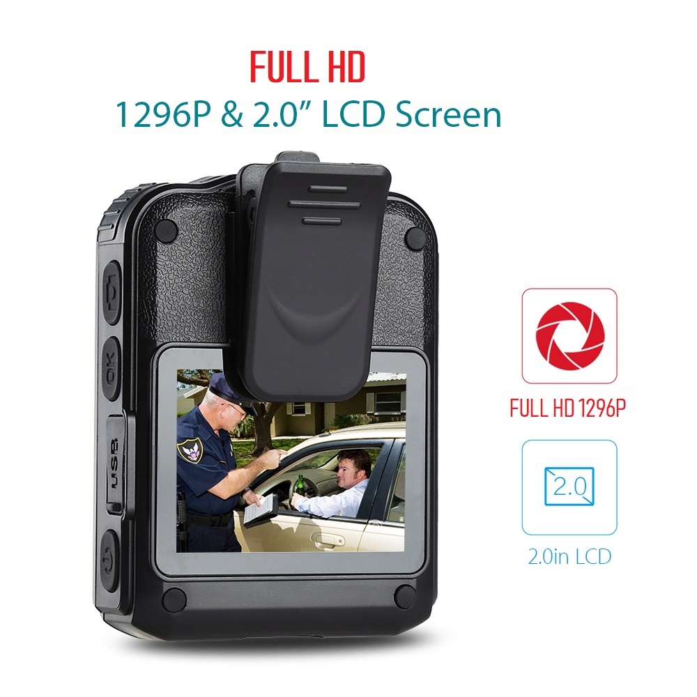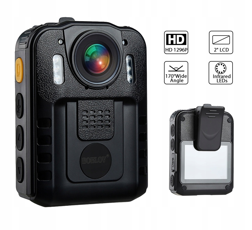 Body Cam, FULL HD, Wbudowana Bateria, Przetwornik CMOS 1080p 2mpx full hd, Wodoodporna, Wytrzymała