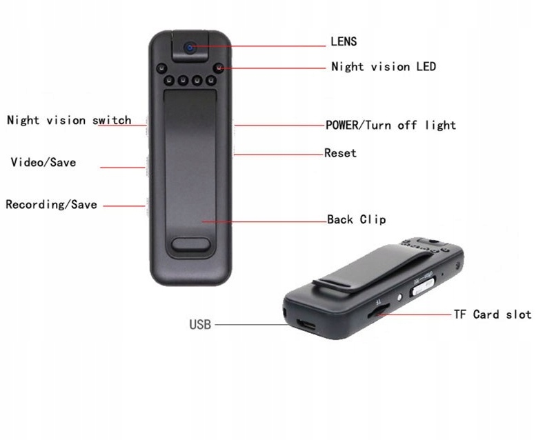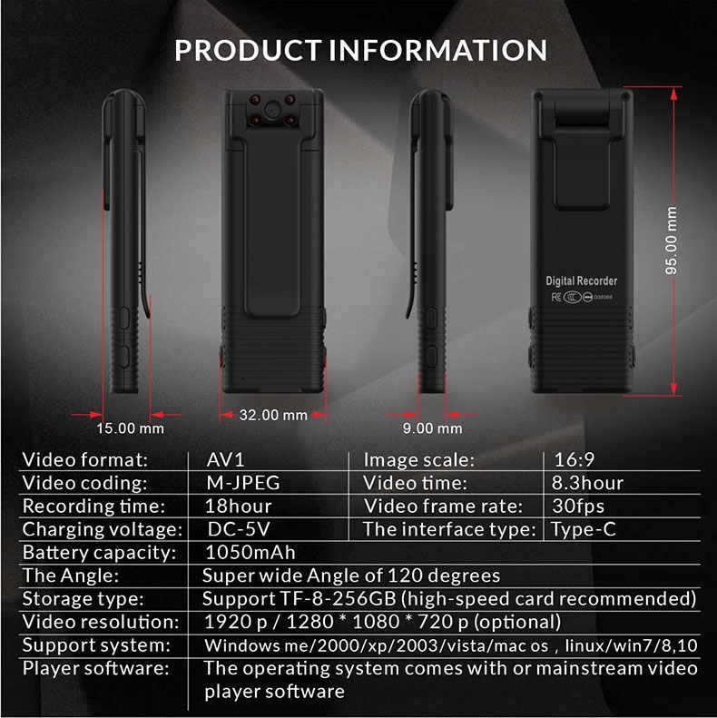 - Duża pojemna bateria 1100mAh-czas nagrywania do 8h