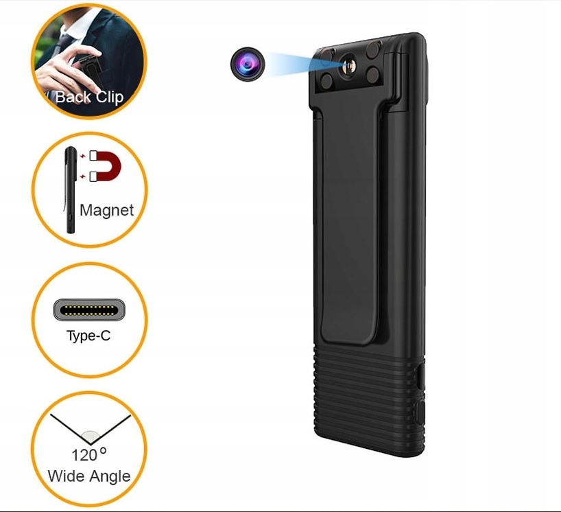 Body Cam, FULL HD, Wbudowana Bateria, Przetwornik CMOS, Wytrzymała obudowa