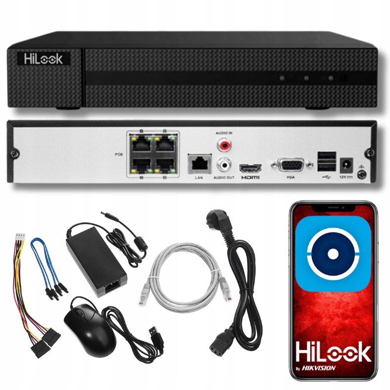 REJESTRATOR HIKVISION HILOOK SERIES 4 KANAŁOWY DO MONITORINGU IP Z WBUDOWANYM POE NVR-4CH-4MP/4P