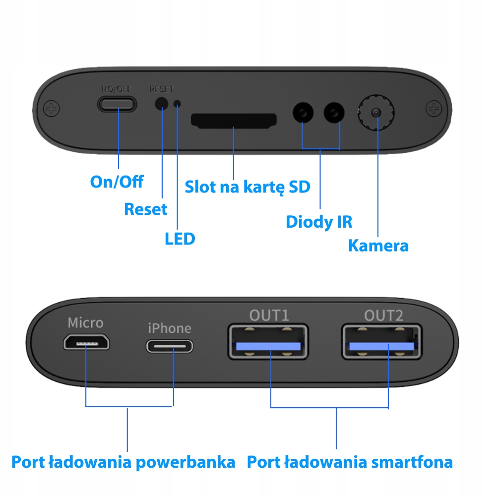 UKRYTA KAMERA POWERBANK H3 NAGRYWANIE W NOCY DO 20 GODZIN FULL HD