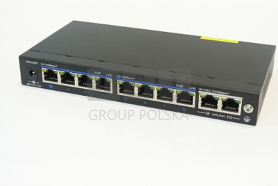 • Switch PoE dedykowanydo instalacji IPCCTV • 8 portów 10/100Mb/s PoE / PoE+ • 2 porty UPLINK 1000Mb • do 30W na port (PoE+) • transmisja do 250m (w trybieCCTV) • wbudowane zabezpieczenia przepięciowe • szybkość przesyłania pakietów 4.166Mpps • Wsparcie VLAN