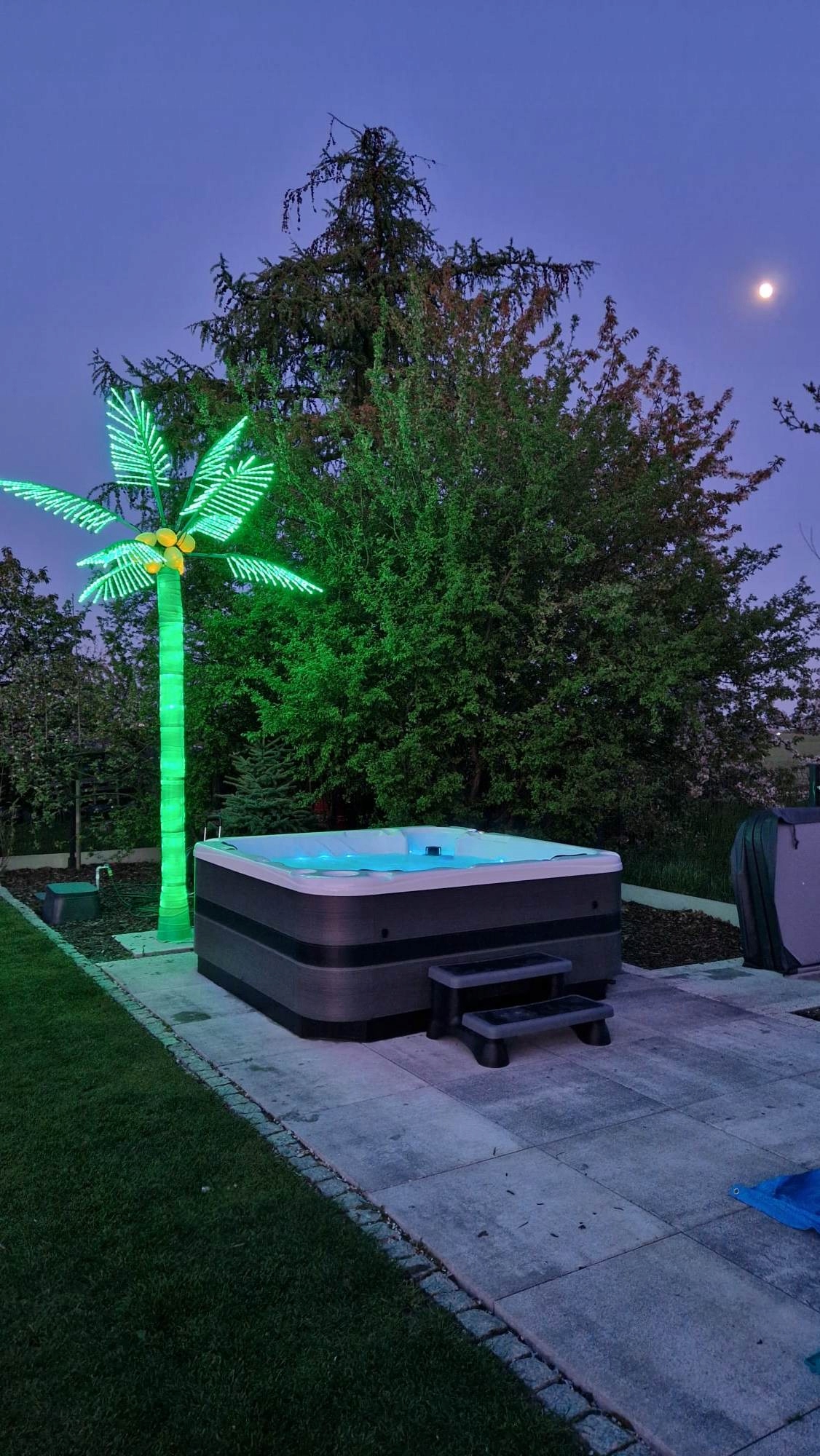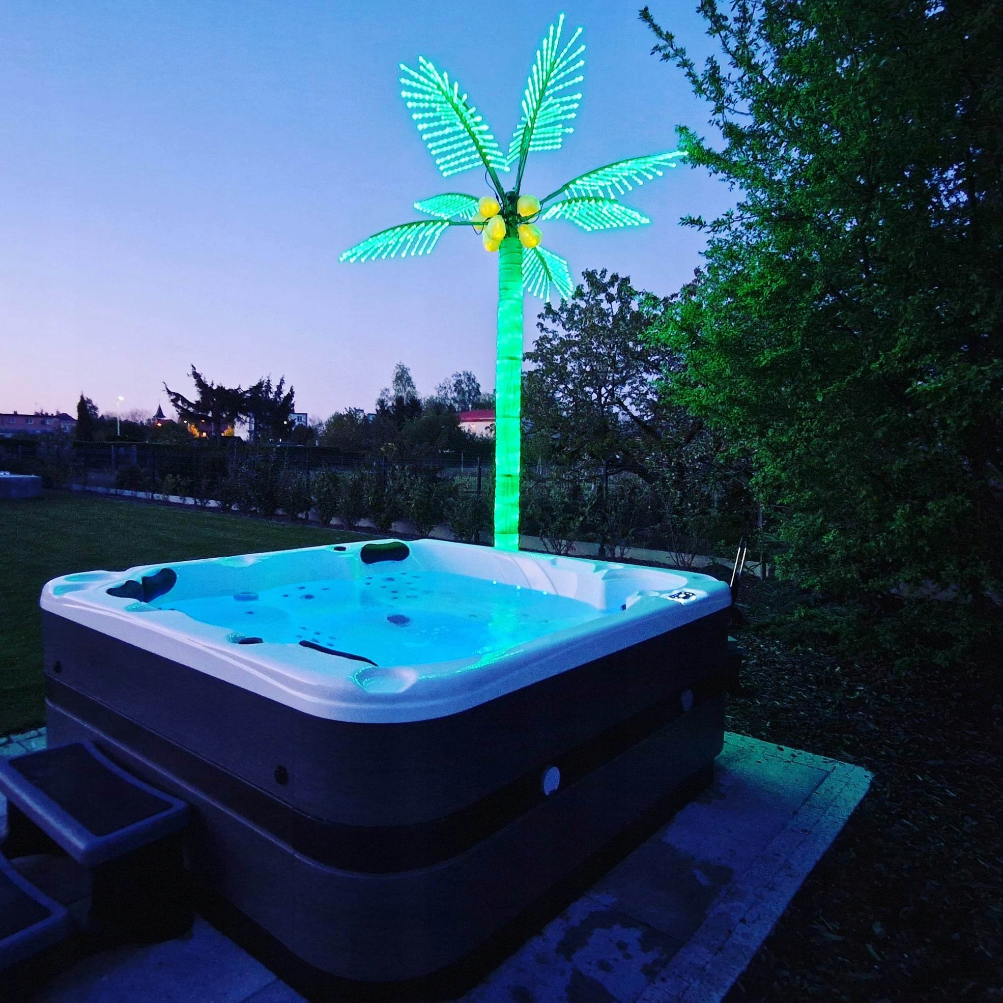 Wanna z hydromasażem SPA posiada również szereg atrakcji m.in szeroki wodospad, oświetlenie chromoterapia czy podświetlane podstawki na kubki zapewniając niezwykłą zabawę dla wszystkich kąpiących się osób. Ponadto zamontowany system audio oparty na dwóch wodoodpornych mocnych głośnikach oraz wbudowanej łączności bezprzewodowej bluetooth, pozwoli słuchać ulubionej muzyki z dowolnego urządzenia. Mini-basen ogrodowy jest również przemyślany pod względem kosztów utrzymania.