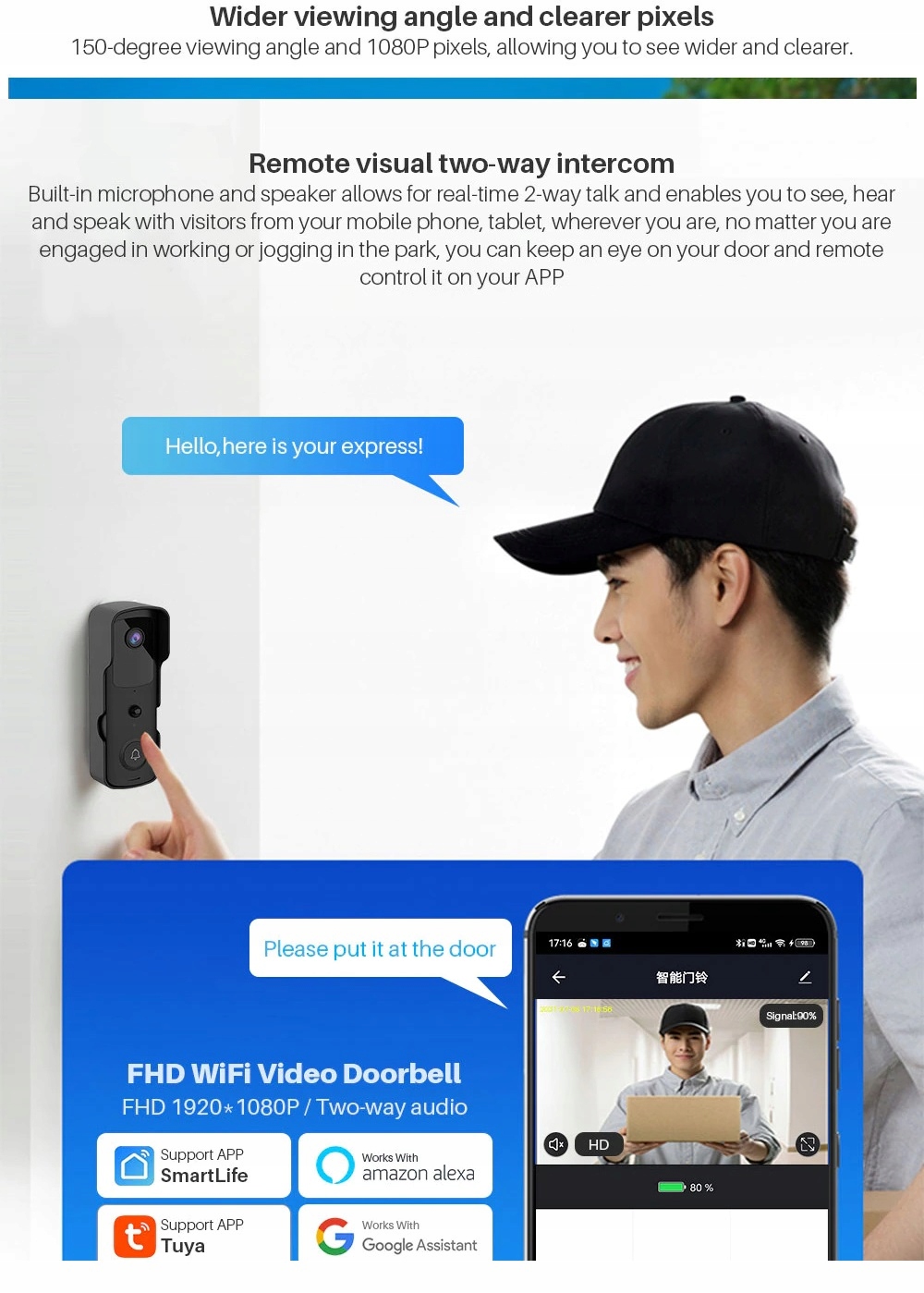 Wideodomofon w porównaniu do innych modeli jest wodoodporny, klasa wodoodporności IP53. Już nie musisz się martwić o to, czy po deszczu będzie on nadal działał!