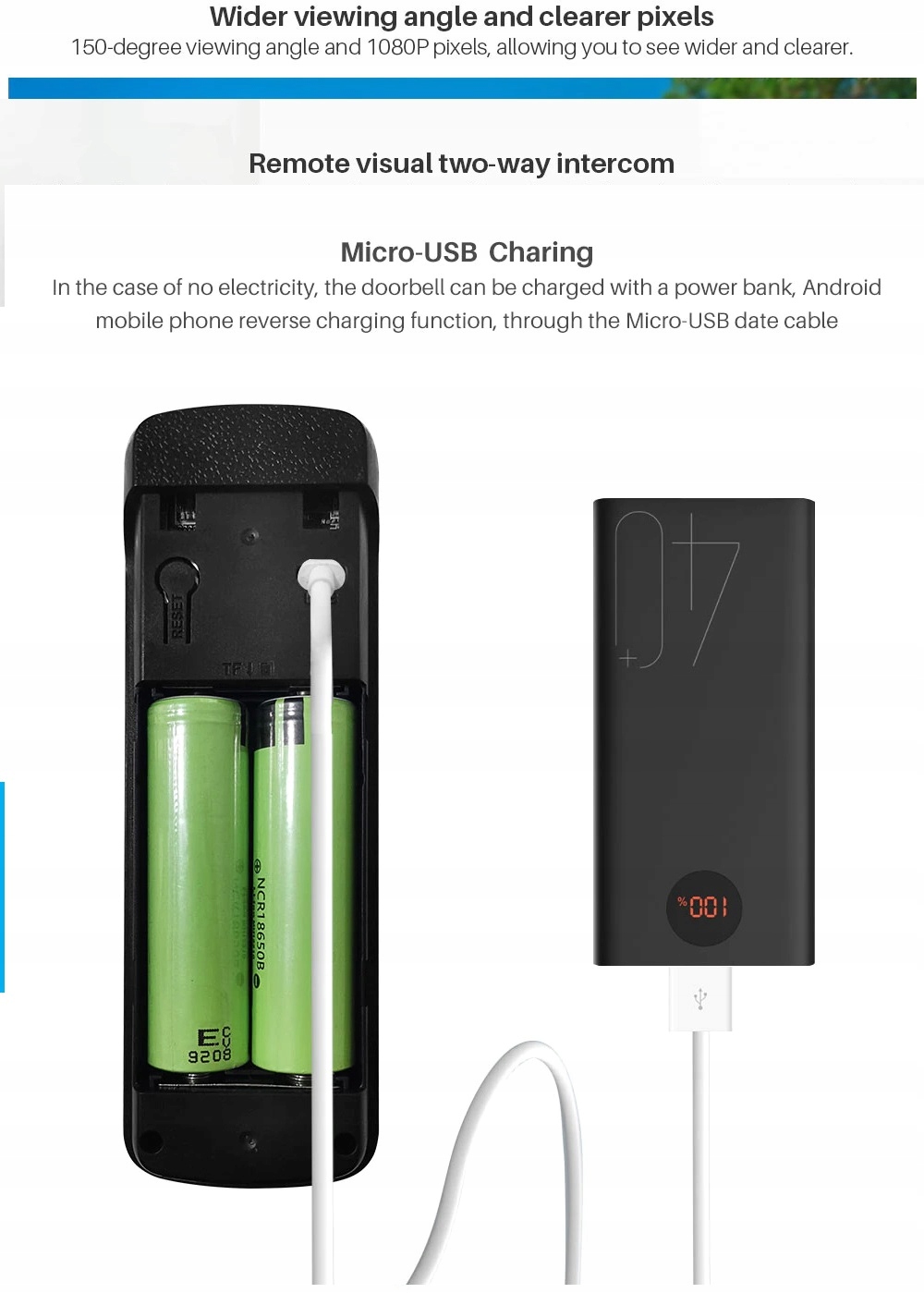 - Zasilanie wideodomofonu: 2xAkumulator typu18650