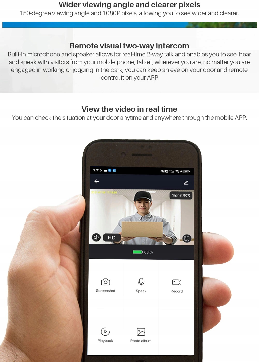 Wysokiej jakości obraz pozwoli Ci z łatwością ujrzeć wszystko to, co dzieje się przed Twoimi drzwiami. Kamera świetnie nadaje się do monitoringu oraz komunikacji będąc w samochodzie, w pracy, na ulicy, na wakacjach itp.