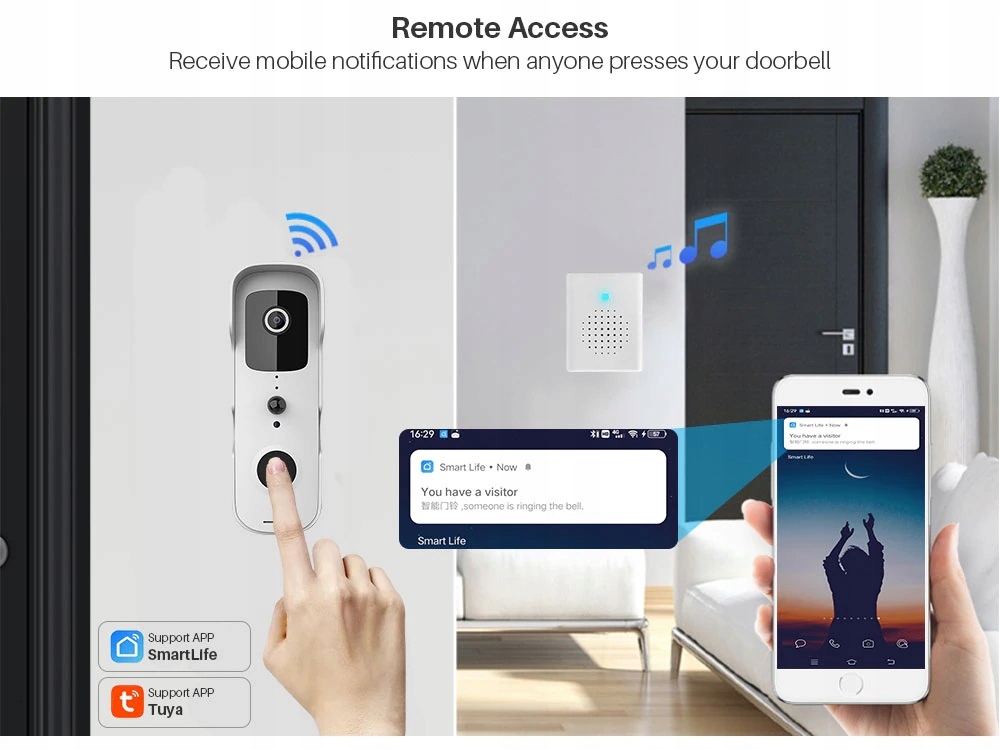 Wideodomofon łączy się bez problemu z domowym WiFi, dzięki czemu uzyskasz dostęp do jego obrazu gdziekolwiek jesteś. Korzystając z wygodnej aplikacji Tuya Smart w języku polskim, dostępnej na iOS i Android, masz możliwość podglądu z kamery w czasie rzeczywistym.