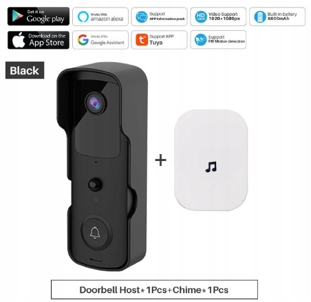 WIDEODOMOFON WIFI DOMOFON KAMERA FULL HD TUYA- KOLOR CZARNY