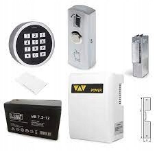 Zestaw kontroli dostępu z szyfratorem. Zestaw jest gotowy do podłączenia. W przypadku zaniku napięcia w sieci zasilacz buforowy z akumulatorem gwarantuje prawidłową nieprzerwaną pracę systemu.