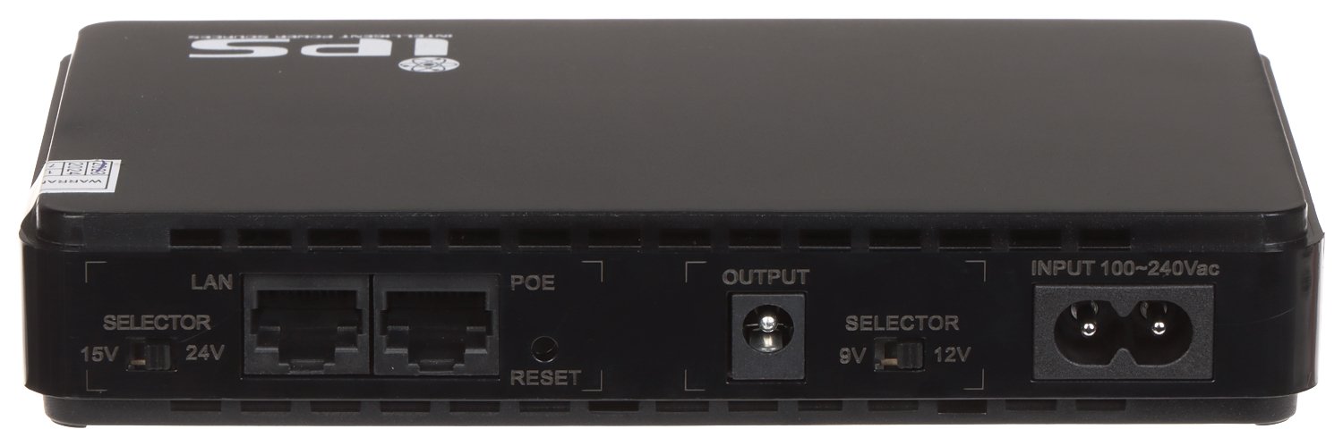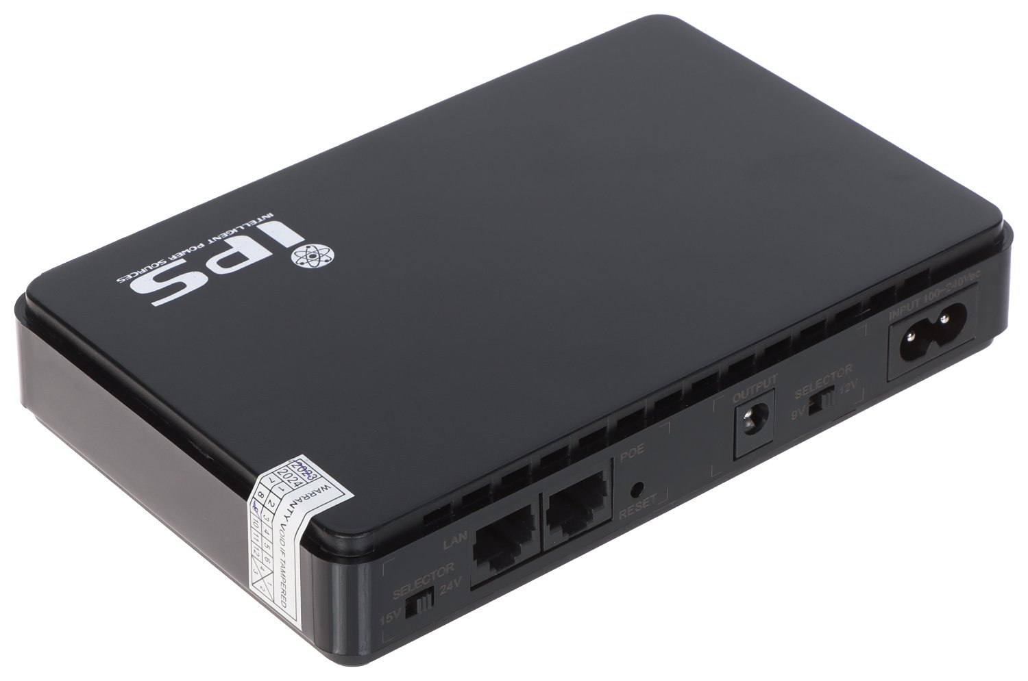Zasilacz UPS przeznaczony jest do zasilania urządzeń o niewielkim poborze mocy, jak np. router Urządzenie charakteryzuje się małą obudową, ekonomiczną konstrukcją oraz automatycznym uruchamianiem przy braku zasilania sieciowego. Zasilacz UPS posiada wbudowany interfejs PoE 15V/24V zapewniający transmisję danych oraz zasilanie za pomocą jednego złącza RJ-45